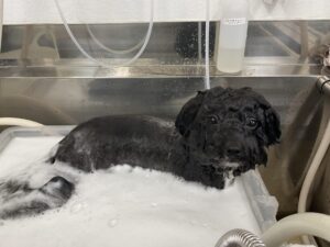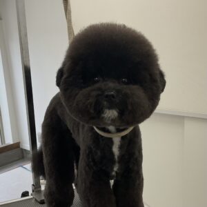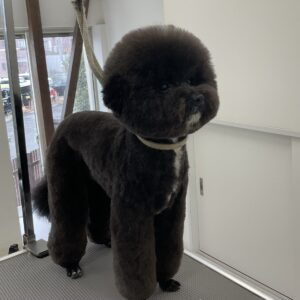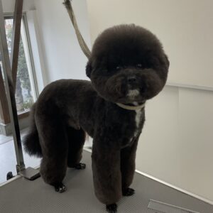 毎月オゾンマイクロナノバブル浴+炭酸泉浴をご利用のT・プードルの銀時くん、体5㎜大きく丸くビションのお顔、四肢細く足先バリカンの注文です。ー