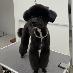 毎月オゾンマイクロナノバブル浴+炭酸泉浴をご利用のT・プードルの銀時くん、体3㎜お顔は丸くテディベア四肢細く足先バリカンの注文です。