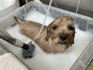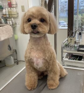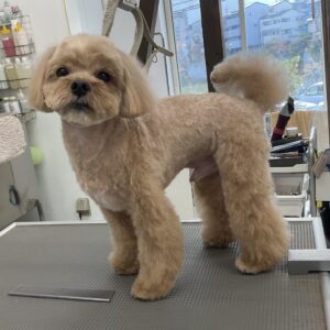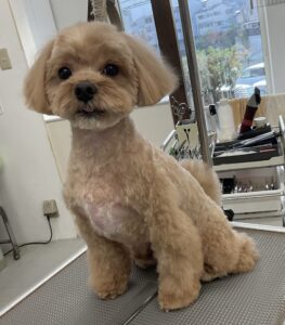 毎月オゾンマイクロナノバブル浴のカットコースをご利用のミックス犬(マルチーズ×トイプードル)の風汰くんは、体3㎜テディベア四肢細めのベルボトムのご注文です