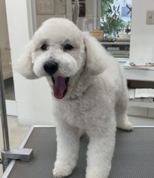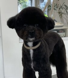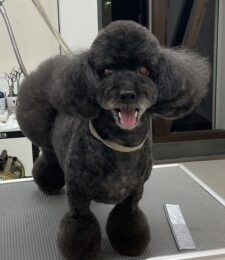 毎月オゾンマイクロナノバブル浴+炭酸泉浴をご利用のT・プードルの銀時くん、体3㎜大きく丸くビションのお顔、四肢細く足先バリカンの注文です。…