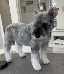 2ヶ月毎にカットコースをご利用のミニチュアシュナウザーのルウくんは、体5㎜四肢細くトップは5㎜マズル小さく丸くご注文です…