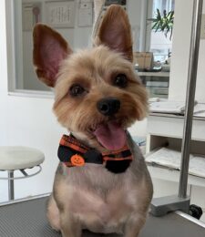 毎月カットコースをご利用のヨーキーのごえもんくんは、体3㎜四肢細くお顔は丸くお耳は揃えます…
