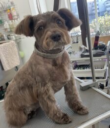 1.5ヶ月毎にオゾンマイクロナノバブル浴+炭酸泉浴のカットコースをご利用のM・シュナウザーのルルちゃんは、体2㎜ 四肢揃えてお顔は頬3㎜ トップは5㎜のシュナウザーカットのご注文です。…