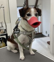 マイクロナノバブル浴のシャンプーコースをご利用のジャックラッセルの小太朗くんです…