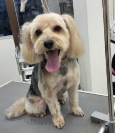 マイクロナノバブル浴のカットコースをご利用のミックス犬(ヨーキー×トイプードル)の小春ちゃんは、体5㎜四肢細くお顔も短くテディベアのご注文です…