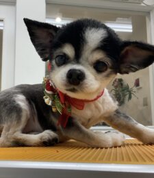 2ヶ月毎にオゾンマイクロナノバブル浴+炭酸泉浴のカットコースをご利用のチワワのモモちゃん16歳は、体2㎜全バリのご注文です…