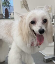毎月マイクロナノバブル浴のカットコースをご利用のチャイニーズクレステッドドッグのユーリちゃんは体5㎜お顔は鋏で短く顔バリ様にトップからキ甲迄は長くのご注文です…