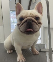 オゾンマイクロナノバブル浴+炭酸泉浴のシャンプーコースをご利用のフレンチブルドッグのブリュレくんです…