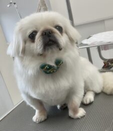 毎月オゾンマイクロナノバブル浴のカットコースをご利用のペキニーズのまろちゃんは、体サイド胸お尻を短く鋏仕上げのご注文です…