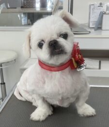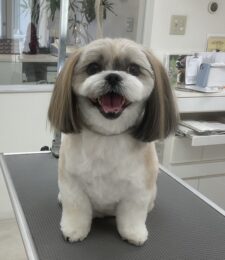 毎月カットコースをご利用のミックス犬(マルチーズ×シーズー)のさくらちゃんは、体1㎝残しの鋏仕上げお顔も短く丸くのご注文です…