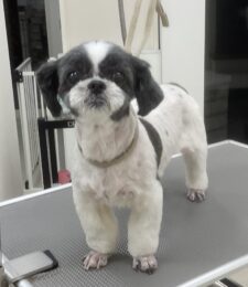毎月オゾンマイクロナノバブル浴+足先バリカン+歯磨きのカットコースをご利用のミックス犬(マルチーズ×シーズー)のモコちゃんは、体3㎜四肢8㎜お顔も短く丸くのご注文です …