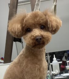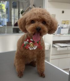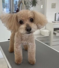 ⒈5ヶ月毎にオゾンマイクロナノバブル浴+炭酸泉浴のカットコースをご利用のT・プードルのマロンくんは、ハルくんと一緒にご来店です。体8㎜ 四肢細く ふっくらテディベアのご注文です。…