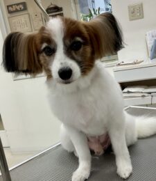 毎月カットコース+歯磨きをご利用のミックス犬(パピヨン×トイプードル)のルーくんは、体8㎜お尻桃尻のご注文です…