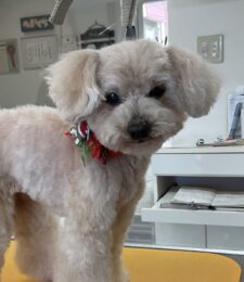 T・プードルのルチルちゃんは、体3㎜テディベアマズルは丸く四肢太くお耳も短くのカットコースをご利用です。…