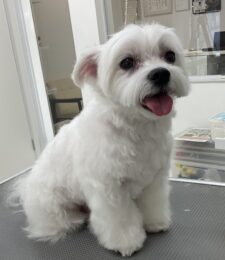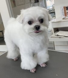 毎月カットコースをご利用のマルチーズの王子くんは、体5㎜サマーマイアミマイアミ足先バリカンお顔は丸く耳2㎜のご注文です…