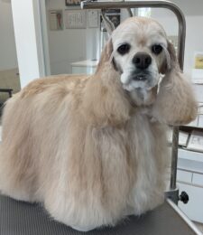 2週間毎にご来店のアメリカンコッカーのねねちゃん、今日はオゾンマイクロナノバブル浴で体3㎜コッカーカットのご注文です…