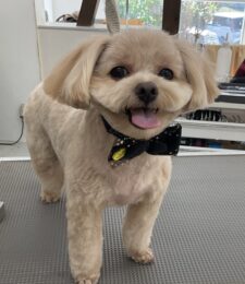 ⒈5ヶ月毎にカットコースをご利用のミックス犬(マルチーズ×ダックス)のぶーくんは、体3㎜マイアミ足先バリカンお顔は短く丸くのご注文です…