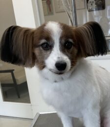 毎月カットコース+歯磨きをご利用のミックス犬(パピヨン×トイプードル)のルーくんは、体8㎜お尻桃尻のご注文です…