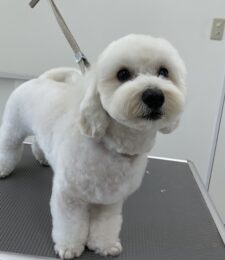 毎月カットコースをご利用のミックス犬(マルチーズ×シーズー)のさくらちゃんは、体1㎝残しの鋏仕上げお顔も短く丸くのご注文です…