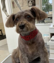 ⒈5ヶ月毎にカットコースをご利用のミニチュアシュナウザーのエルフィくんは、体2㎜シュナカットのご注文です…
