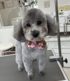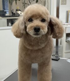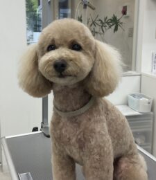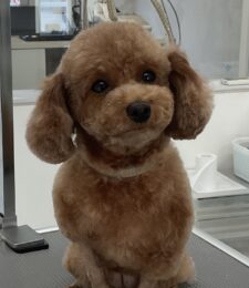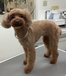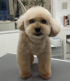 2ヶ月毎にオゾンマイクロナノバブル浴のカットコースをご利用のトイプードルのしじみくんは、体3㎜四肢細くお顔は鋏で短くのご注文です…