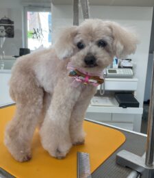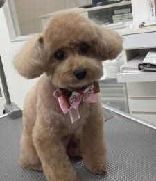 2ヶ月毎にカットコースをご利用のトイプードルのわかめちゃんは、体8㎜羊カットお顔はテディベアのご注文です…
