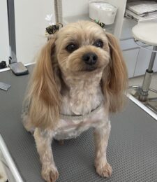 2ヶ月毎にマイクロナノバブル浴のカットコースをご利用のヨーキーのシンバくんは、T・プードルのチップちゃんと一緒にご来店です。体3㎜ 口元ふっくら 四肢細く 足先短くのご注文です。…