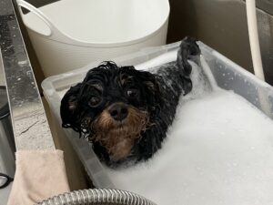 炭酸泉浴+オゾンマイクロナノバブル浴のカットコースをご利用のミックス犬(チワワ×トイプードル)のPOOL(プール)くんは、体6㎜テディベアお耳は短く丸くのご注文です。