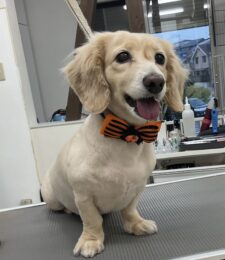 2ヶ月毎にオゾンマイクロナノバブル浴+炭酸泉浴のカットコースをご利用のミニチュアダックスのプリンちゃんは、体2㎜全バリのご注文です…