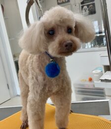 毎月オゾンマイクロナノバブル浴+炭酸泉浴+歯磨きのカットコースをご利用のトイプードルのロメロくんは、体2㎜テディベアのご注文です…