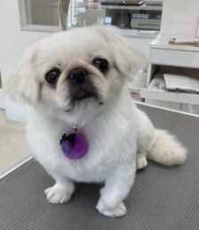 毎月オゾンマイクロナノバブル浴のカットコースをご利用のペキニーズのまろちゃんは、体サイド胸お尻を短く鋏仕上げのご注文です…