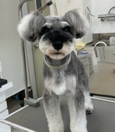 ⒈5ヶ月毎にカットコースをご利用のミニチュアシュナウザーのエルフィくんは、体2㎜シュナカットのご注文です…