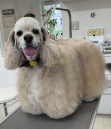 2週間毎にご来店のアメリカンコッカーのねねちゃん、今日はオゾンマイクロナノバブル浴で体3㎜コッカーカットのご注文です…