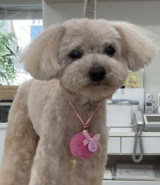 毎月オゾンマイクロナノバブル浴のカットコースをご利用のミックス犬(マルチーズ×トイプードル)のななちゃんは、体3㎜おテディベア四肢細めのベルボトムのご注文です…