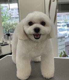 ⒈5ヶ月毎にオゾンマイクロナノバブル浴+炭酸泉浴のカットコースをご利用のマルチーズのゆあくんは、体10㎜四肢太くお顔は丸くのご注文です。…