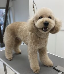 シャンプーコースをご利用のトイプードルのあさりくん、お顔はテディベアのご注文です…