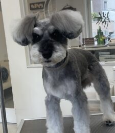 ⒈5ヶ月毎にカットコースをご利用のミニチュアシュナウザーのエルフィくんは、体2㎜シュナカットのご注文です…