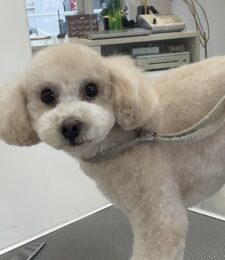1.5ヶ月毎にオゾンマイクロナノバブル浴のカットコースをご利用のT・プードルのむーんちゃんは、あーすくんと一緒にご来店です。体2㎜の全バリお顔はすっきりテディベアのご注文です。…