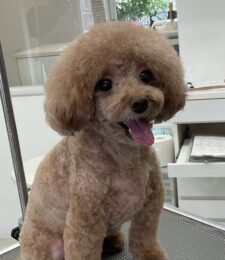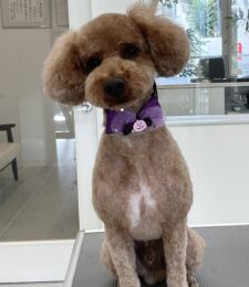 2ヶ月毎にカットコースをご利用のトイプードルのマロンちゃんは、体3㎜ショートマッシュ四肢細くのご注文です…