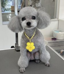 2ヶ月毎にオゾンマイクロナノバブル浴+炭酸泉浴のカットコースをご利用のトイプードルのジュノンくんは、体10㎜テディベアのご注文です…