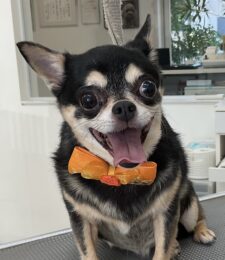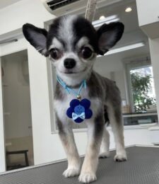 2ヶ月毎にオゾンマイクロナノバブル浴+炭酸泉浴のカットコースをご利用のチワワのココアくんは、体5㎜全バリライオンの尾っぽのご注文です…