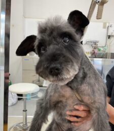 毎月マイクロナノバブル浴+薬浴のカットコースをご利用のM・シュナウザーのしゅーくんは、体3 ㎜四肢5㎜ トップはモヒカン お髭は短くのご注文です。…