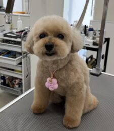 1.5ヶ月毎にオゾンマイクロナノバブル浴のカットコースをご利用のT・プードルのむーんちゃんは、あーすくんと一緒にご来店です。体2㎜の全バリお顔はすっきりテディベアのご注文です。…