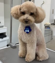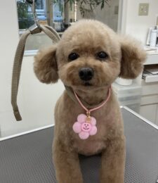 T・プードルのラズリちゃんは体3㎜顔バリ、四肢細く、耳なり丸くのカットコースをご利用です…