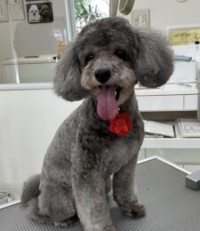 2ヶ月毎にオゾンマイクロナノバブル浴のカットコースをご利用のT・プードルのりんちゃんは、体5㎜ のテディベアカット四肢細く 口元ふっくらのご注文です。…