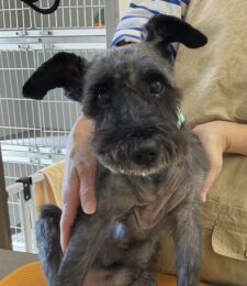 毎月マイクロナノバブルシャワー+薬浴のカットコースをご利用のM・シュナウザー14歳しゅーくんは、体3 ㎜全バリ トップも3㎜お髭は短くのご注文です。…