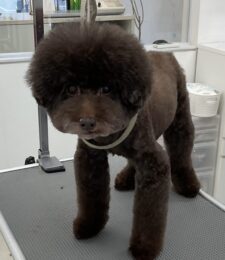 T・プードルのラズリちゃんは体3㎜顔バリ、四肢細く、耳なり丸くのカットコースをご利用です…